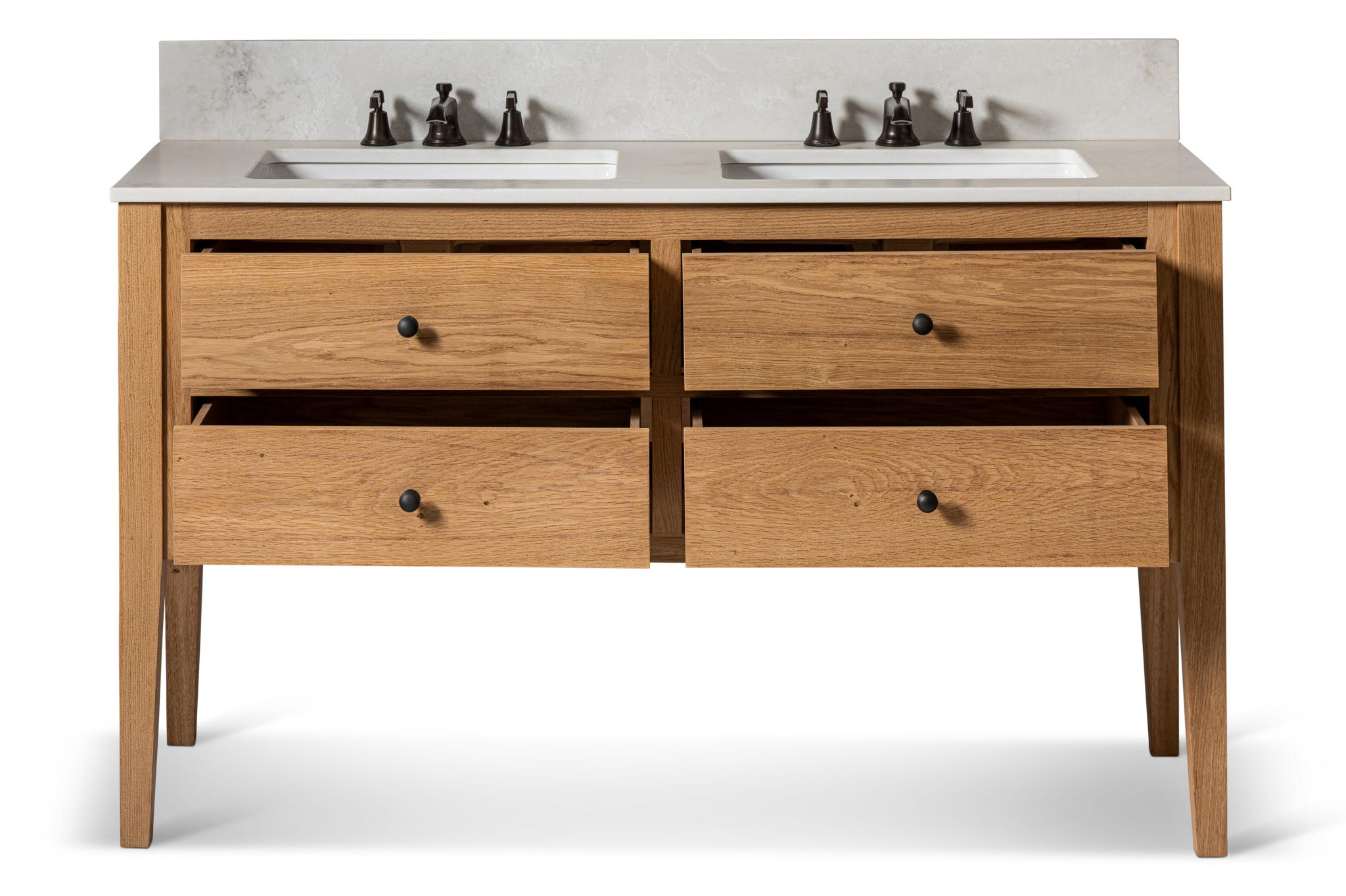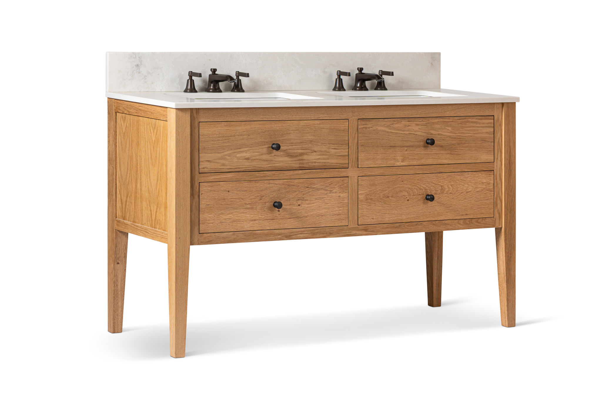Create a striking focal point with our solid-wood bathroom vanity units, tailored to your exact space and style. Our collection includes a versatile range of sizes and configurations.